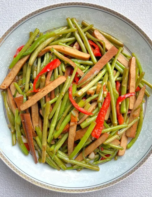一道看似简单的素菜,却最考验火候。好的芦蒿炒香干,芦蒿碧绿脆嫩,香干软糯入味,满盘春色,满口清香。
