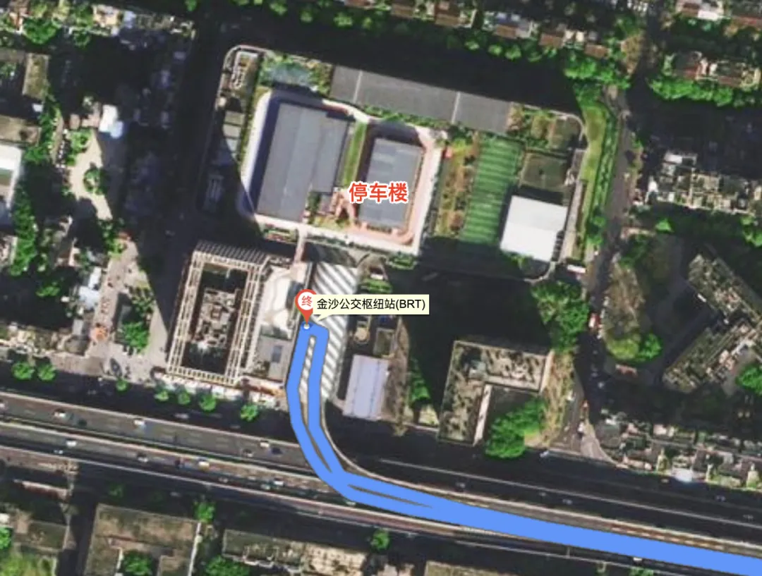 而高架brt上的公交车只在高架上跑,并不下高架,为此其还在高架上方设置了金沙江公交枢纽站(BRT)旁边就是独立的停车楼,这也是成都最大的停车楼,就相当于地铁的停车场。