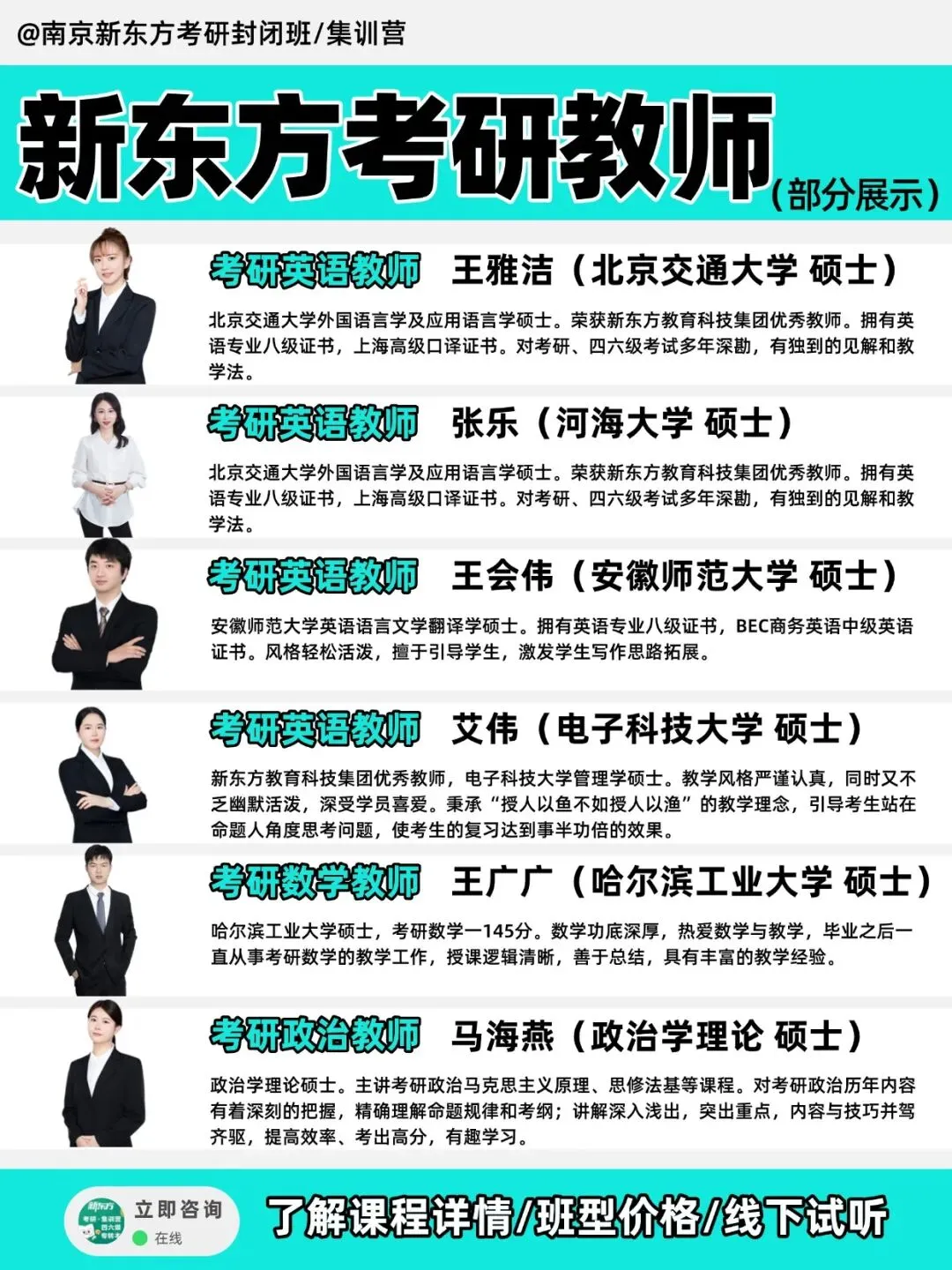 ④教学服务:💕新东方全职教师全程跟班授课,100%硕博以上学历。教研赛课,每年都参加考研考试,把握考试动态,精益求精,带来高质量教学,教学经验丰富。