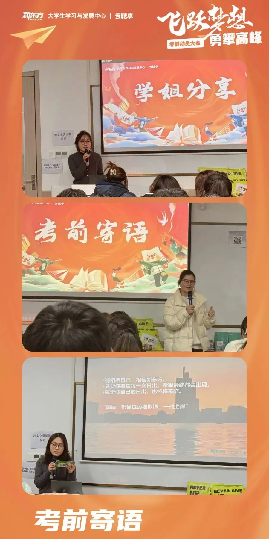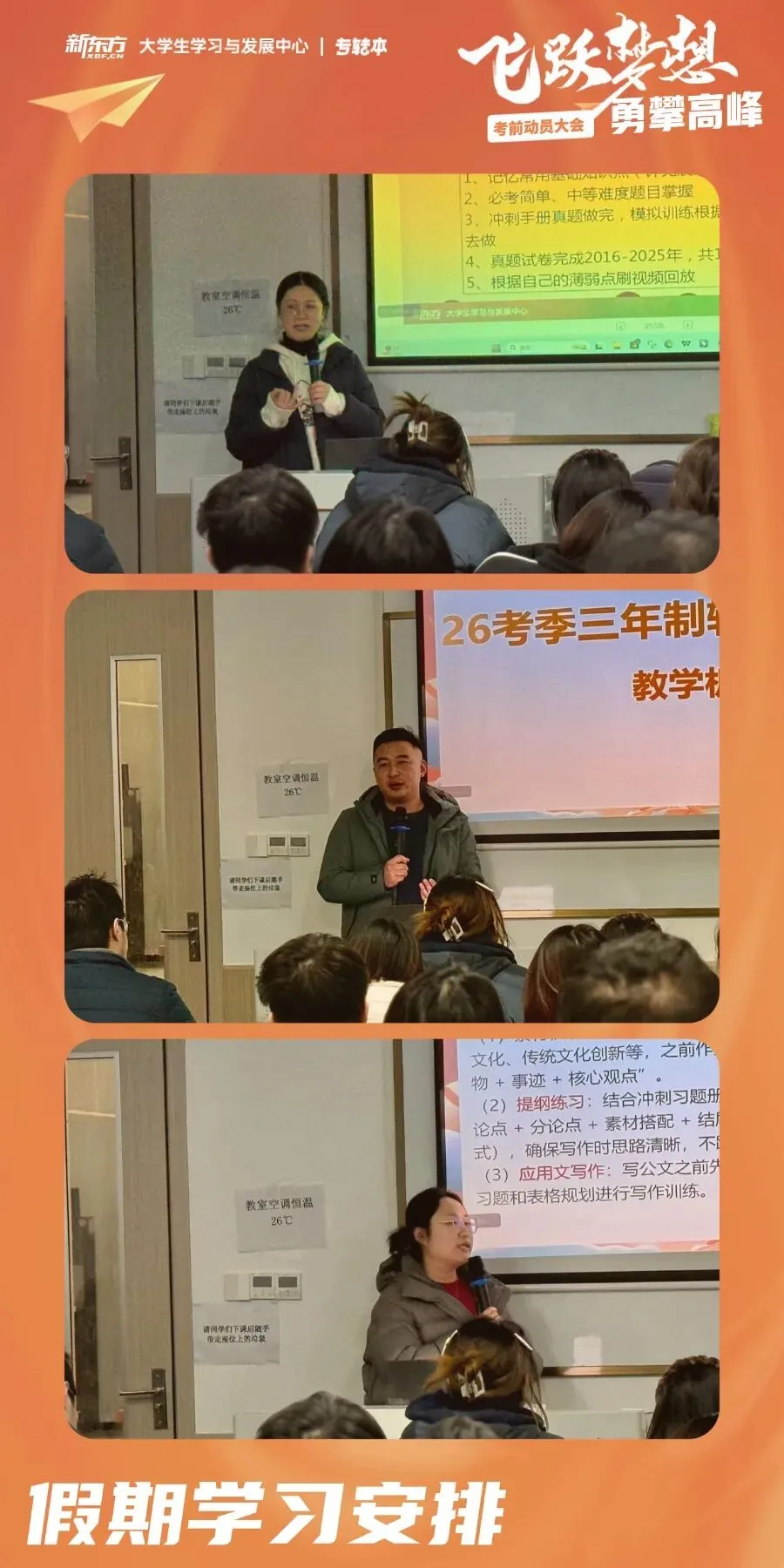 年味愈浓,冲刺正酣✨ 昨晚,南京新东方专转本年前考前动员会温情开讲,与全体备考学员相聚,为即将到来的假期备考定方向、鼓干劲,共赴最后1个月的上岸之约!