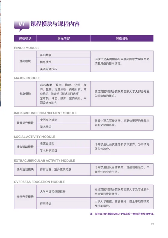 UFP(University Foundation Programme)课程创办于1989年,属于英国高中阶段准备入读英国大学的预备课程,迄今为止已有100多所大学高校和部分英联邦国家如澳洲,加拿大,新加坡,马来西亚高校认可UFP课程及证书。
