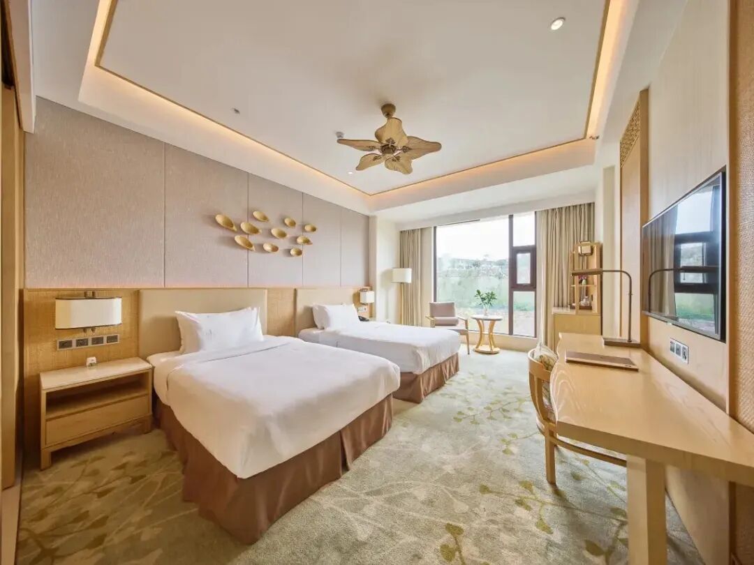 步入12米挑高的大堂,原木材质与天然温泉石摆件营造出温润的氛围,暖黄灯光搭配轻柔的背景音乐,瞬间驱散旅途疲惫。酒店山景高级房将自然美景框进窗内。大量运用的天然材质与温和色调,让每一间房都成为身心灵休憩的容器。每间客房都融入自然元素,面积宽敞明亮,软硬件设施豪华舒适。