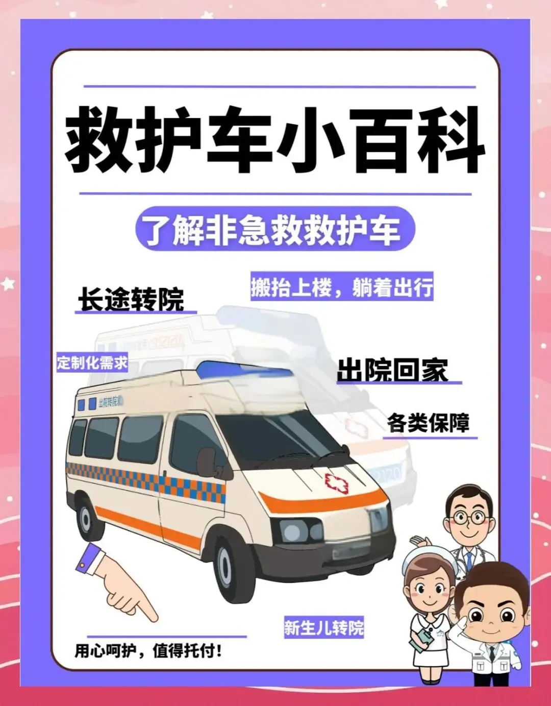 首先跟大家讲一下,我们是正规的120非急救转运公司啊。咱们呢,是配备的专业的医生和护士,还有司机。咱们的救护车收费标准呢,也是明码标价的。咱们长途按照公里数收费,短途是按照起步价收费的,所以说收费标准这一块儿,您可以放心。
