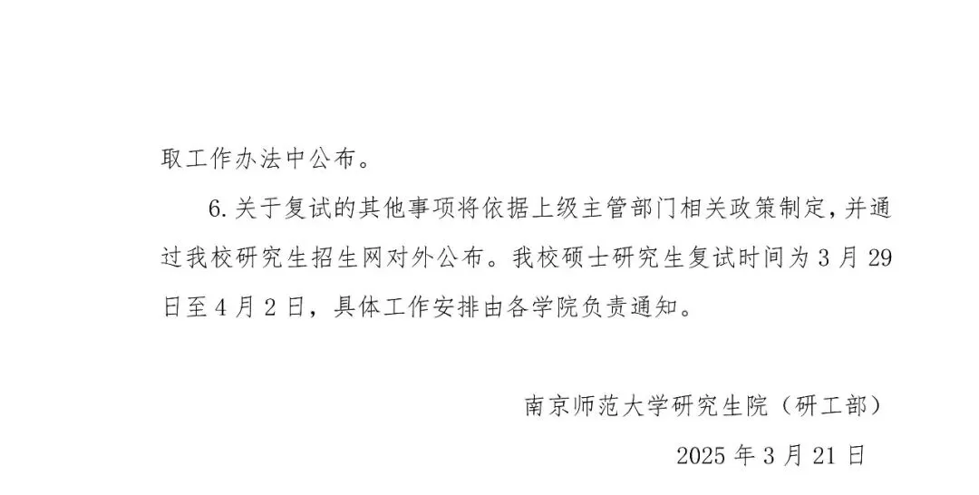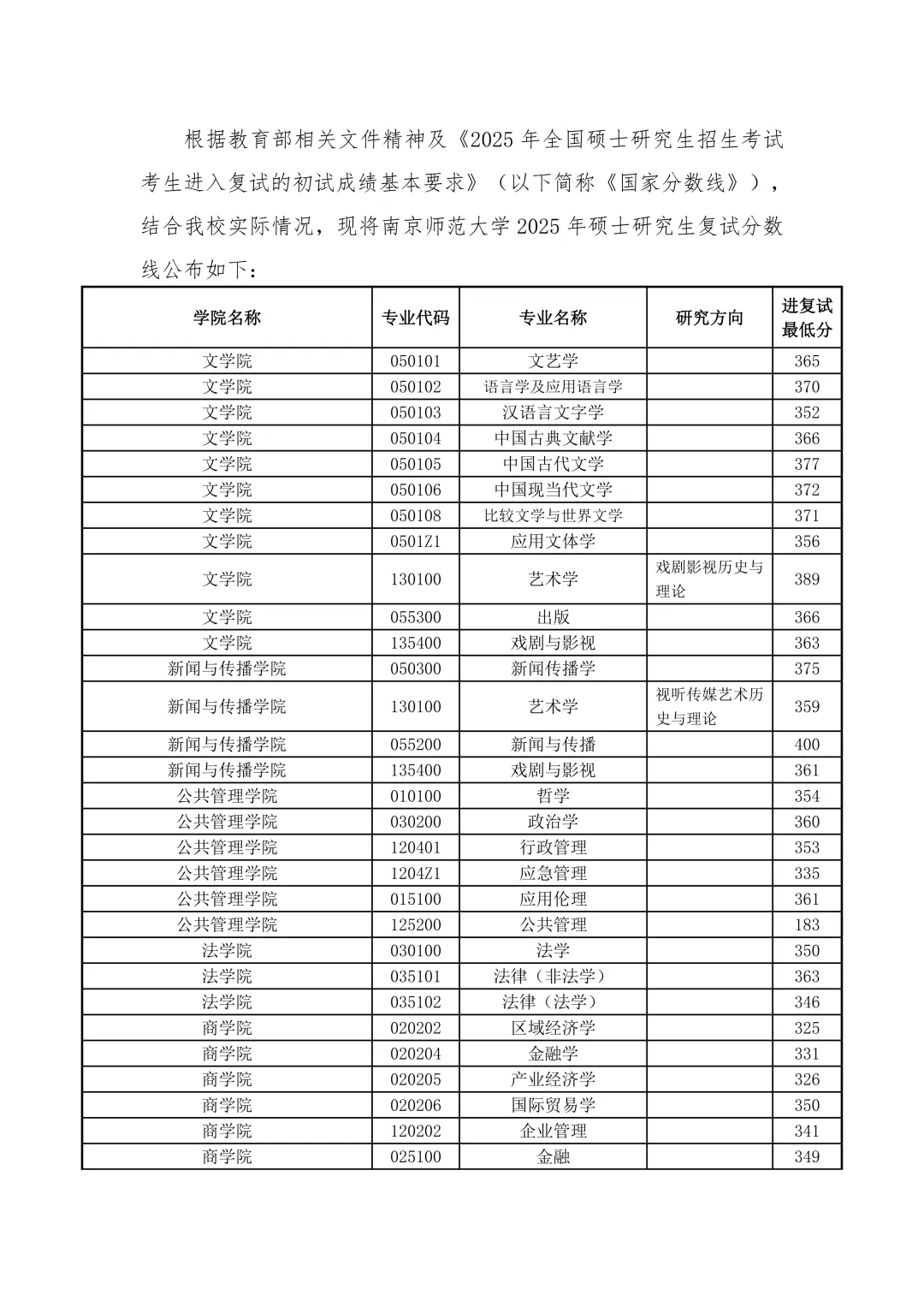 获取方式——点击以下名片关注公众号【考211】,在对话框发送关键词【211】,进入小程序后找到【硕士】——【历年考研复试基本分数线(34所自主划线+考研国家线)】文件夹免费下载:要具备复试资格,过国家线只是基础(注:34所自主划线其作用与国家线是一样的,只是针对34所院校替代国家线成为本校基础门槛),还需要结合院校的招生计划以及具体报考情况来看,有些院校会在国家线的基础上再发布一个线,有可能会叫一志愿复试标准、院线或专业线,如果没发布,则需要参考进入复试分数的最后一名即可,本期为大家收集整理的是南京师范大学2025年硕士研究生复试分数线: