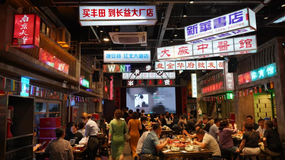 老式桌椅板凳、木头窗子老钟表、各种大厂市民才知道的地标霓虹灯招牌,主打怀旧风的烧烤店让出生、成长在这里的人在进门的瞬间就把记忆拉回到了印象中的那个年代。