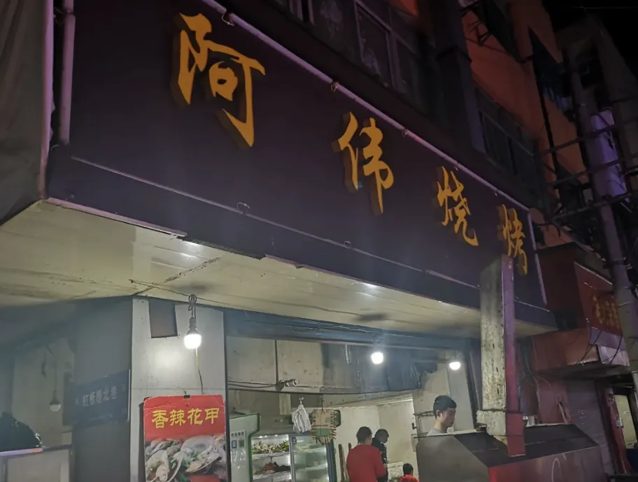 阿伟烧烤,东大四牌楼附近的老虎桥边,阿伟烧烤绝对是四牌楼居民和东大学子的招牌撸串据点。
