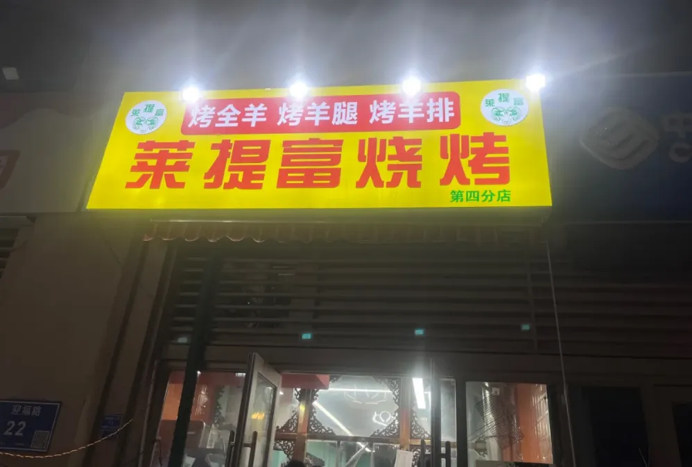 新疆莱提富烧烤,在秦虹、城东、麒麟都有分店,同样都装修得极具异域风情,让人误以为卖的是新疆菜。