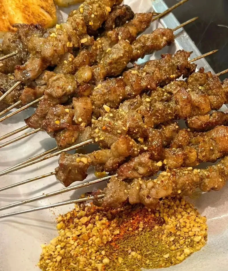 每家店挂的糊都不尽相同,但绝对吃起来都一样的能让你有种“这绝对是新疆烧烤”的感觉。