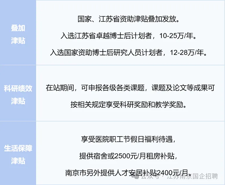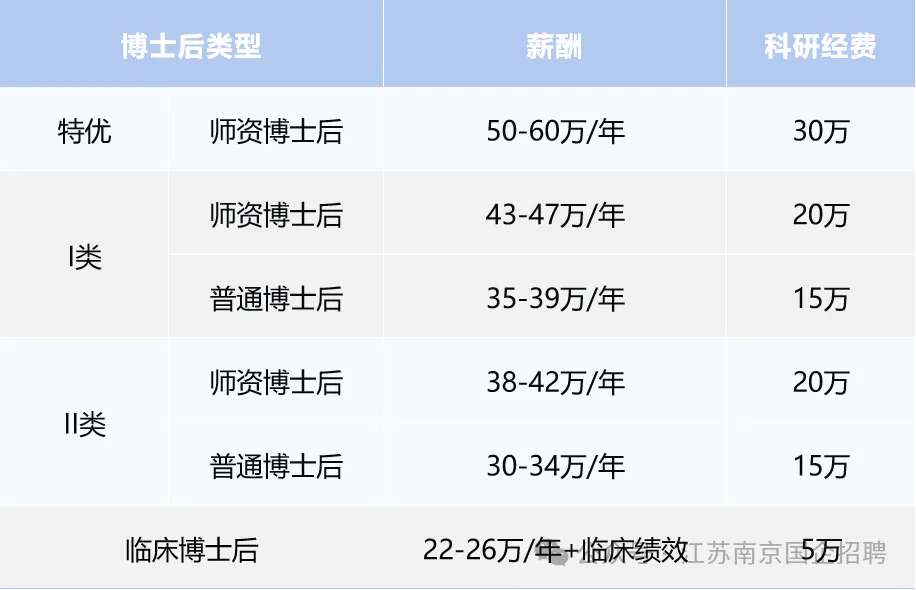 4. 特优博士后:原则上近3年以第一作者(排名前2的并列第一)或通讯作者(含共同通讯)在南京医科大学高水平期刊(高水平2类及以上,以我校最新发布的版本为准)上发表至少1篇科研论著;或者原则上近3年以第一作者(排名第一)或通讯作者(含共同通讯)在南京医科大学高水平期刊(高水平3类及以上,以我校最新发布的版本为准)上发表至少1篇科研论著;或者获得国家资助博士后研究人员支持计划A档(国家博新)或同等层次人才项目可直接入选。入选南京医科大学师资博士后的发放师资博士后待遇。
