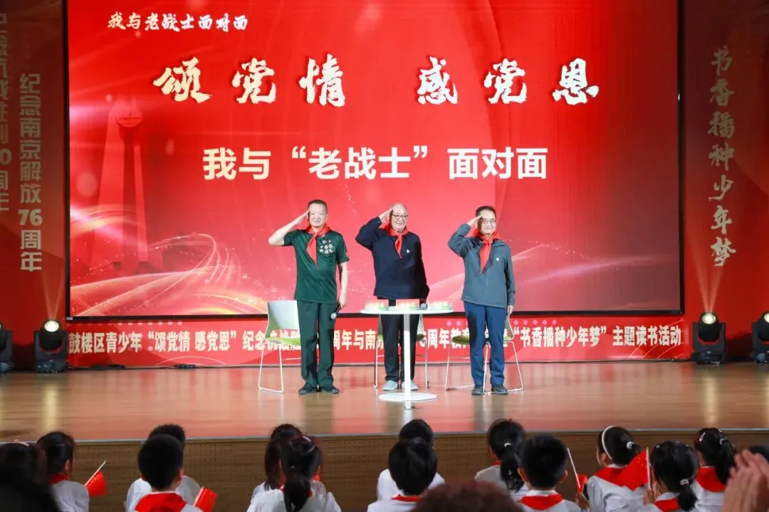 2025年4月22日,南京市关工委主办的青少年“颂党情感党恩”纪念抗战胜利80周年与南京解放76周年教育活动暨“书香播种少年梦”主题读书活动在学校顺利举办。市、区关工委及区委组织部、宣传部等多部门领导,驻区“老战士”代表黄震昌、刘春灏、钱善忠全程参与活动。活动借助“五老”优势与红色场馆资源,落实立德树人根本任务,引导青少年厚植爱党爱国情怀,推动红色教育走深走实。