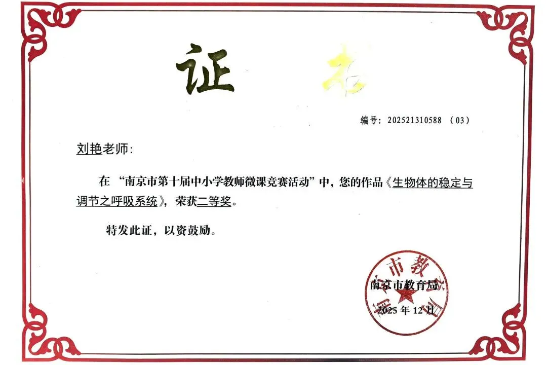 本学年,学校教师在各级教学竞赛中屡创佳绩:邱夏琦获江苏省心理优质课评比一等奖,戴迎冬、祝菊荣等3人获南京市网络培训课程资源征集一等奖,刘艳、卢山获南京市微课竞赛二等奖;黄杏、张雨分获区“鼓劲杯”优质课、班主任基本功比赛特等奖,汪玥等3人获区信息素养提升实践活动特等奖,多名教师在区阅江杯基本功、单元整体教学设计等评比中斩获一等奖,彰显学校教学团队过硬功底。