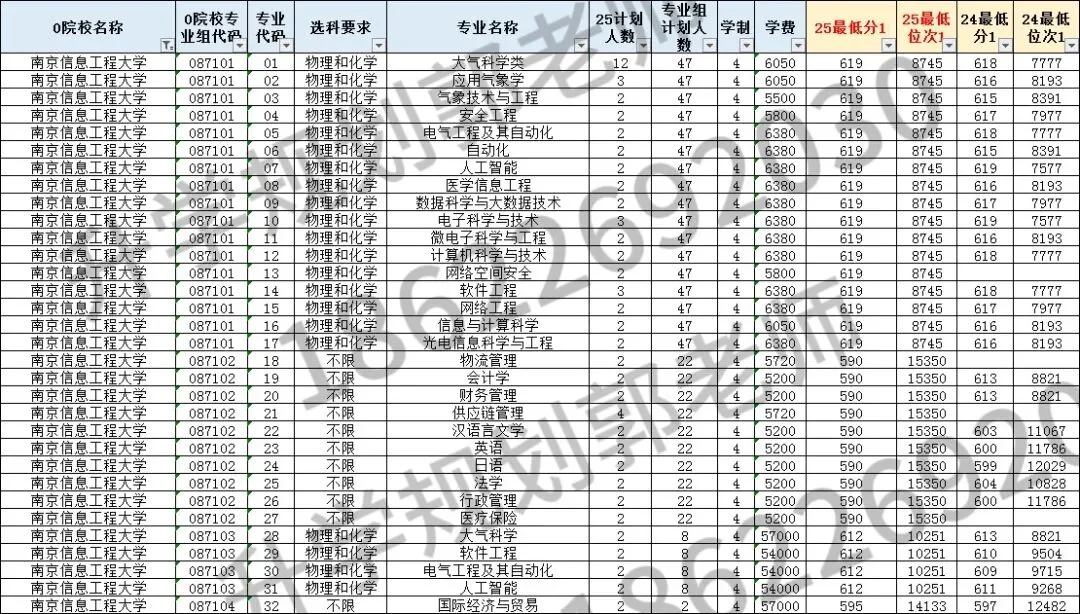 南京信息工程大学录取分数线因省份、专业组、招生类型差异显著,以下结合近两年数据,提供报考参考: