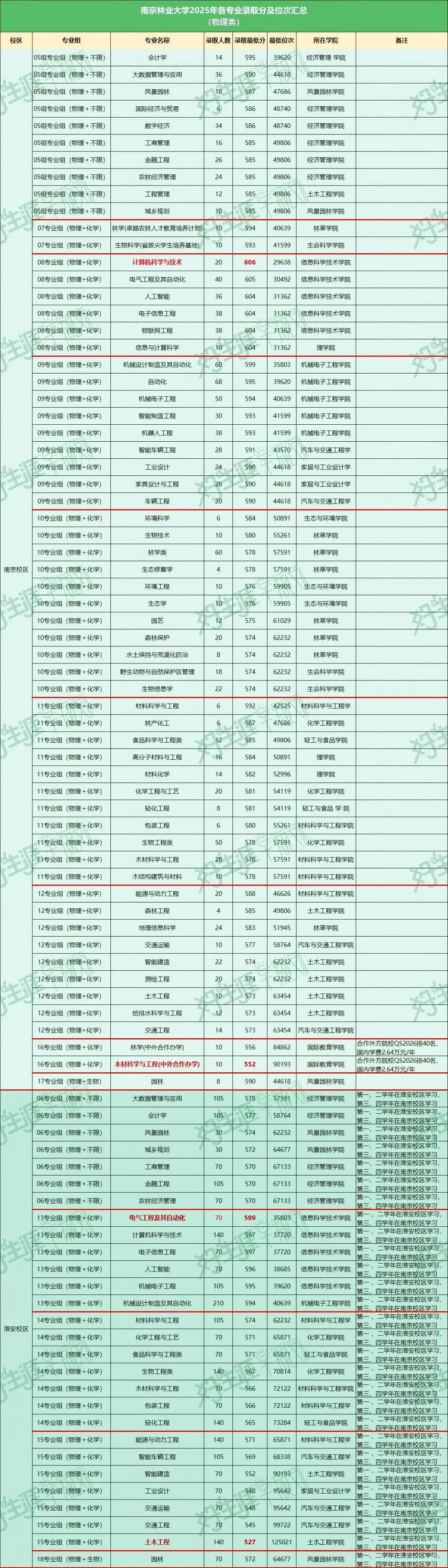 从上图可以看出,选考物理,录取分最低的是木材科学与工程(中外合作办学),分数是552分。选考物理,专业录取分最高分是计算机科学与技术,分数是606分。