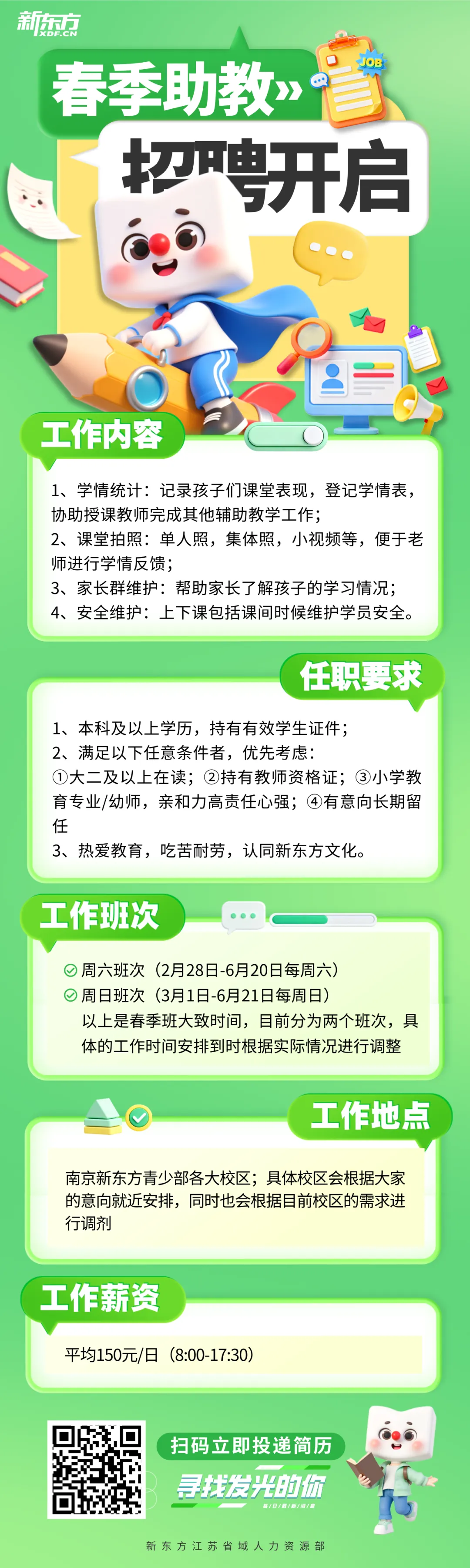 实习生招聘 | 南京地区春季助教岗位招聘开启!