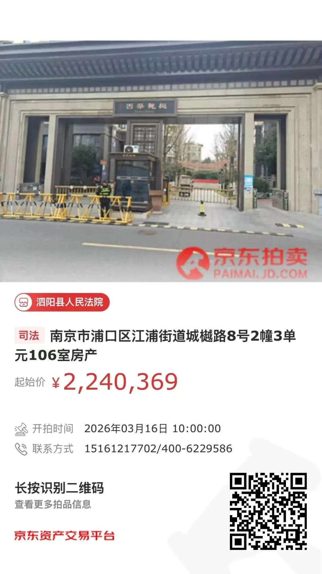 >司法拍卖|南京市浦口区江浦街道城樾路8号3单元106室房产-一拍