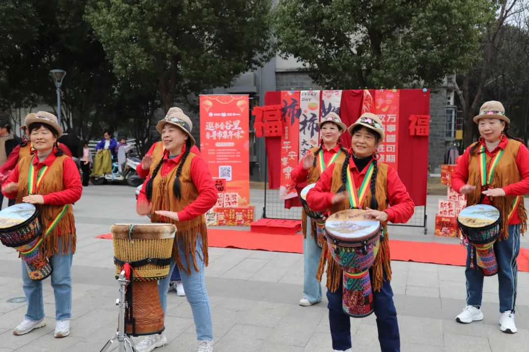 谷里街道新时代文明实践所在庆缘花苑小区广场举办“逛书香谷里·寻市集年味”活动,集文艺演出、民俗体验、年味市集、亲子阅读与便民服务于一体。舞蹈、黄梅戏等节目轮番上演,灯笼DIY、雕版印福等传统技艺体验区人头攒动,本土农产品市集与便民服务点传递着邻里温情与社区关怀。