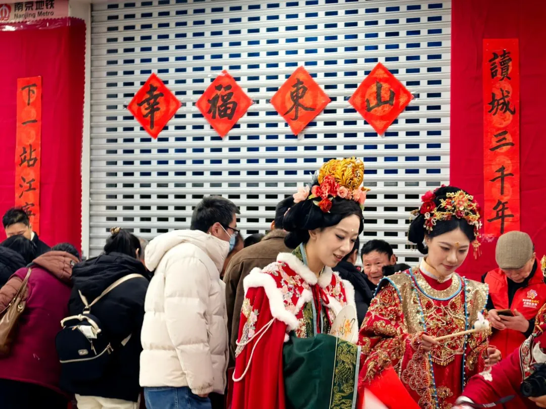 东山街道新时代文明实践所携手“文明实践伙伴”南京地铁集团、江宁万达广场等单位,在地铁5号线东山站内开展“茉莉花开 与宁共赏”春节文化惠民活动。地铁空间化身文化长廊,书法志愿者现场挥毫送“福”写春联,非遗微展厅集中展示方山裱画、剪纸、珠绣等精湛技艺,汉服表演仿佛带领市民穿越千年。活动还延伸至江宁万达广场,设置剪纸、香囊制作、年画拓印等体验项目,并推出“马上通关”打卡集章活动,让市民在趣味互动中深度感受传统年俗与江宁地域文化的双重魅力。
