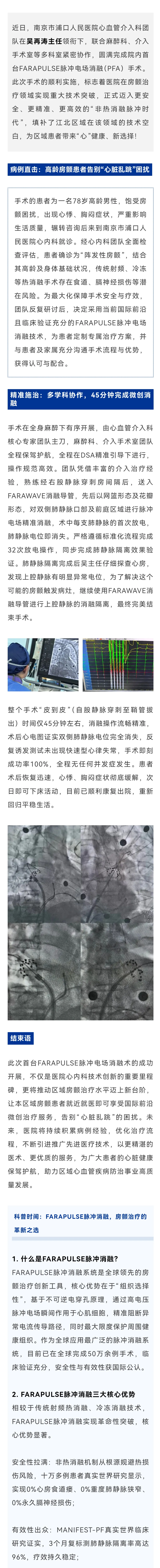 接轨国际—南京市浦口人民医院成功开展首次FARAPULSE脉冲电场消融术,重获一颗安稳的心