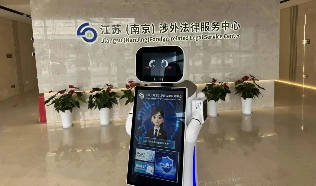 同时,该智慧服务机器人还深度融合了南京公证AI大模型的核心能力,充分发挥公证行业垂直模型的专业特性,叠加AI智能化的场景展示效果,成为全国司法行政系统内将专业公证大模型与具身智能机器人结合应用于涉外法律服务的首创实践。这一创新举措,不仅彰显了南京公证行业在人工智能与公证法律服务融合领域的先行优势,更打造出一套可复制、可推广的智能化服务实践样本,为全国司法行政系统的数字化、智能化建设提供了南京样板。