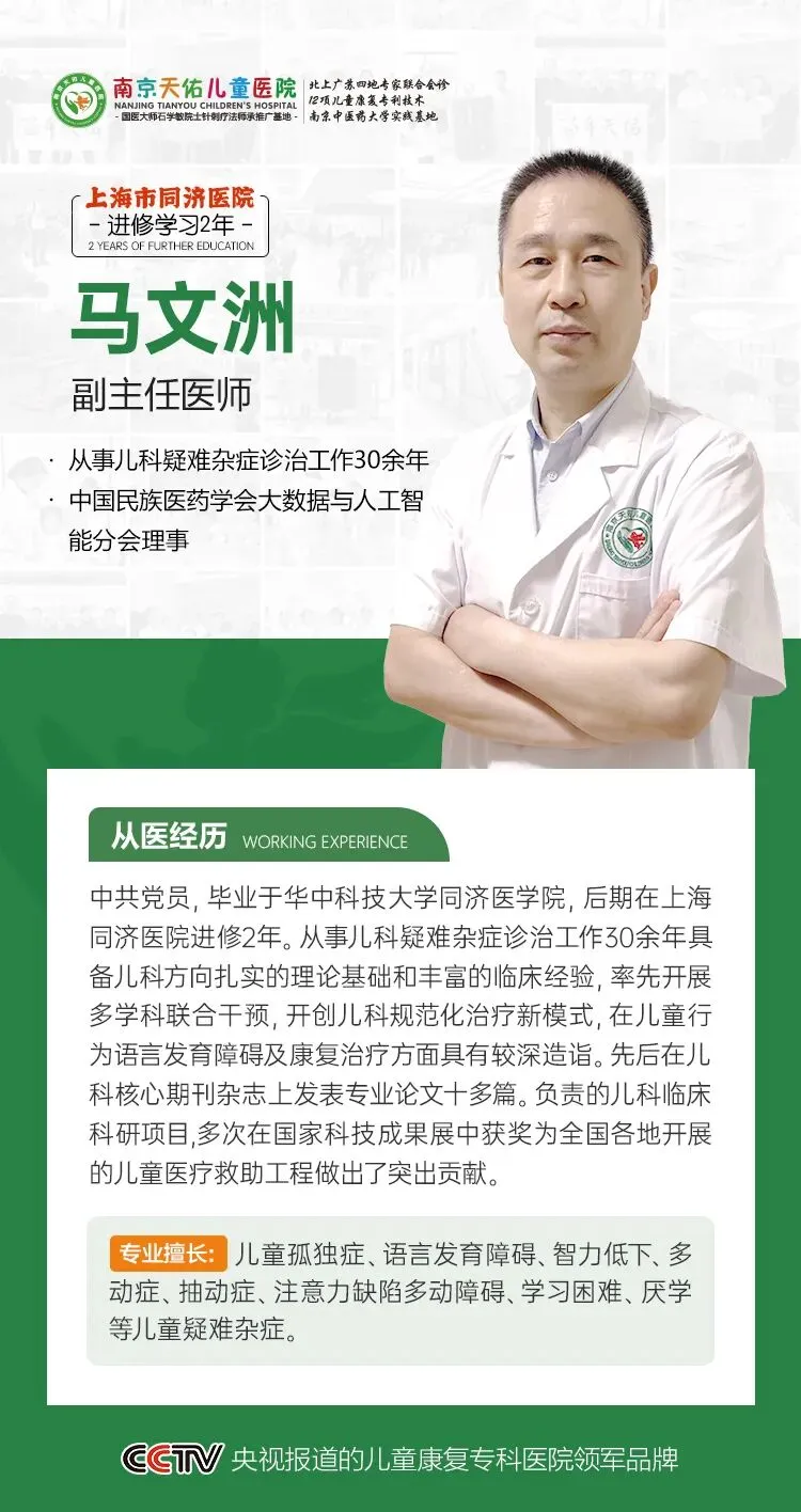 偶然间,诚诚妈妈听闻南京天佑儿童医院在儿童行为发育障碍诊疗领域口碑出众,尤其在多动症、自闭症等疾病的诊治上有着丰富的经验和独特的疗法。抱着一丝希望,也抱着试一试的心态,她带着诚诚来到了医院,接诊他们的正是马文洲主任。