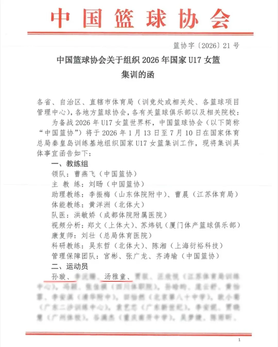 孙璇、汤雅童两位小将再续荣光,继入选U16国家集训队后,此次再度携手晋级U17国家女篮集训队,赛场历练让她们快速成长,连续的国字号认可更是对其不懈努力的最佳见证。