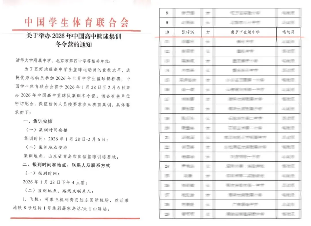 凭借亮眼的表现,张梓淇入选中国高中篮球集训营,与全国高中篮坛精英同台竞技、交流学习,为未来发展积累宝贵经验。