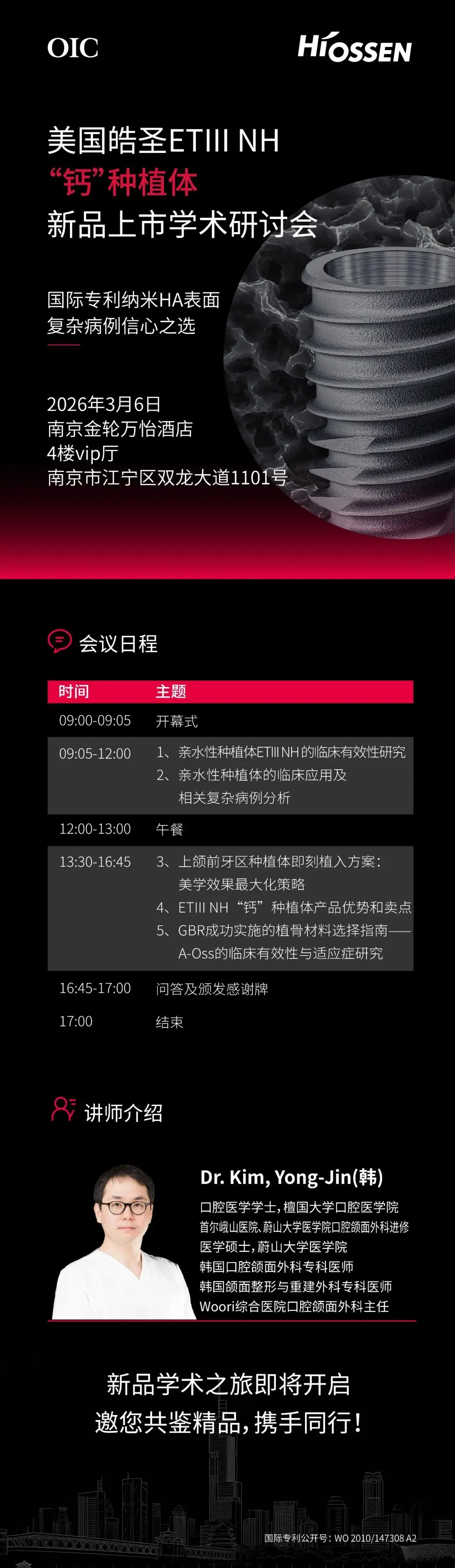 >活动邀请 | 3月6日南京,皓圣新品ETIII NH “钙”种植体上市学术研讨会