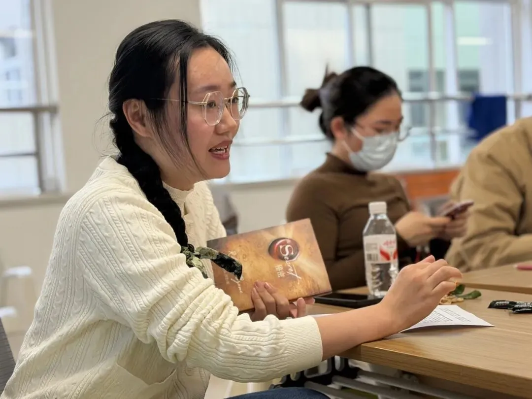 雍小涵:乐书会的新老成员围坐备课室,轻松开启本学期的读书分享。老师们带来的书籍与观点各有精彩,碰撞出不少思维火花。我也和大家交流了《秘密》中的吸引力法则,分享自己的理解之余,还收获了大家的认可,心里特别温暖。读书本就是件治愈的事,一群爱书人相聚畅谈,更是为忙碌的教学日常充了电。期待下学期每月的相聚,愿和同行伙伴一起,在文字里遇见更多风景,在交流中慢慢成长。