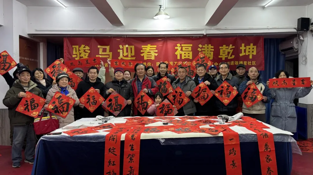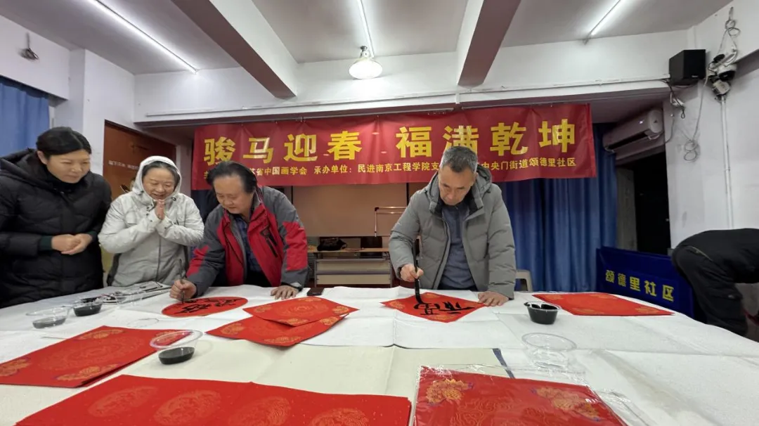 2月10日农历小年,由江苏省中国画学会主办,民进南京工程学院支部和颂德里社区联合承办的“骏马迎春 福满乾坤——送福进社区”活动热闹开场,数位艺术家走进社区,和居民们面对面写春联、送福字,把高雅的书画艺术送到家门口,也把满满的新春祝福送到了大家的心坎里。