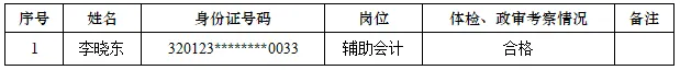 根据《南京市六合区茉莉香粮油经营有限公司招聘简章》要求,经面试、政审、体检程序,以下同志(名单见下表)符合招录条件,确定为拟录用人员,现予以公示。
