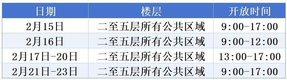 此外,春节期间2月15日至2月23日5楼自习区夜间延迟开放暂停。