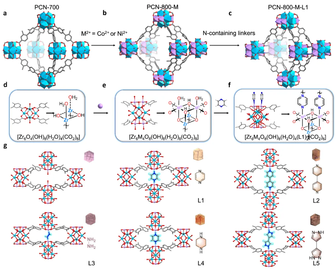 1. 逐步后修饰引入金属与配体,构建PCN-800M-L