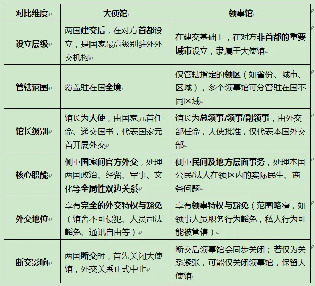 核心区别:大使馆 vs 领事馆