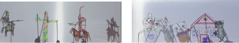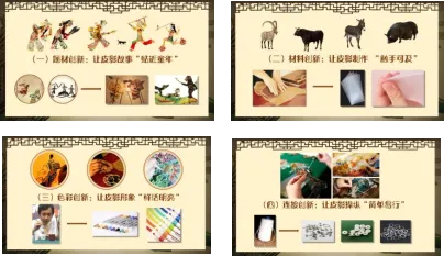 创新课:尝试用环保材料创作,小组合作编演简单皮影戏;