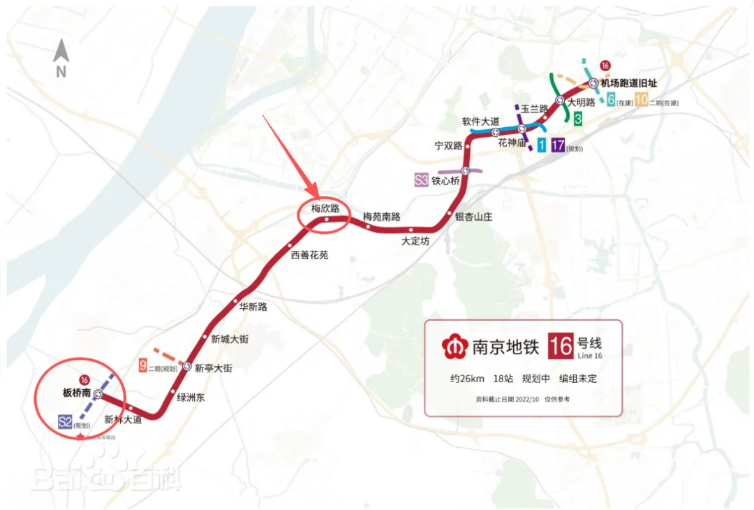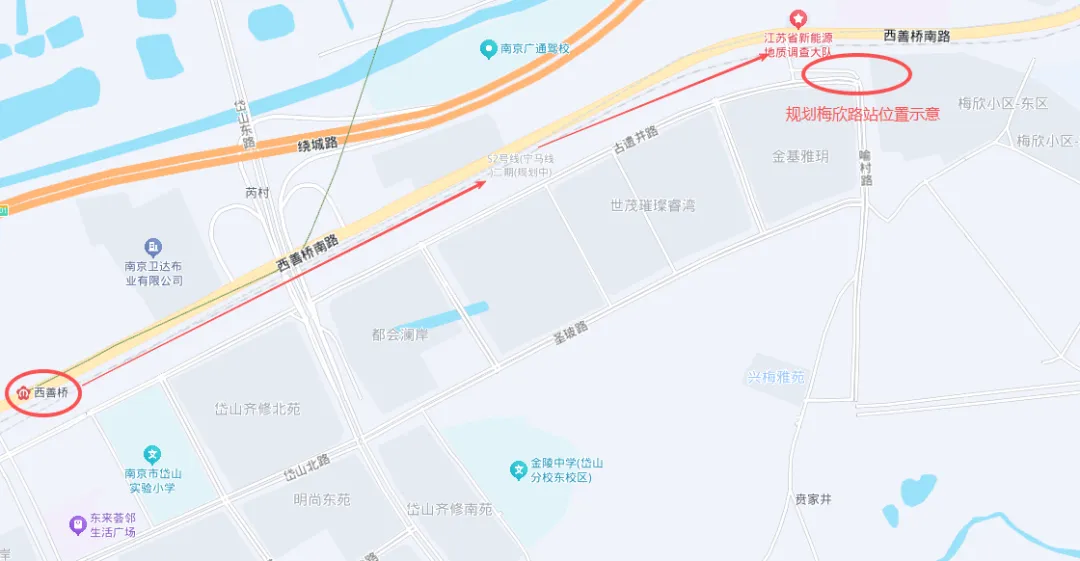 据了解,西善桥区域聚集了大量住宅小区,入住居民数万人。根据16号线的规划图,梅欣路站周边小区有梅欣小区、金基雅玥、世茂璀璨睿湾、都会澜岸等。这个区域居民对于新增地铁站的呼声不断。