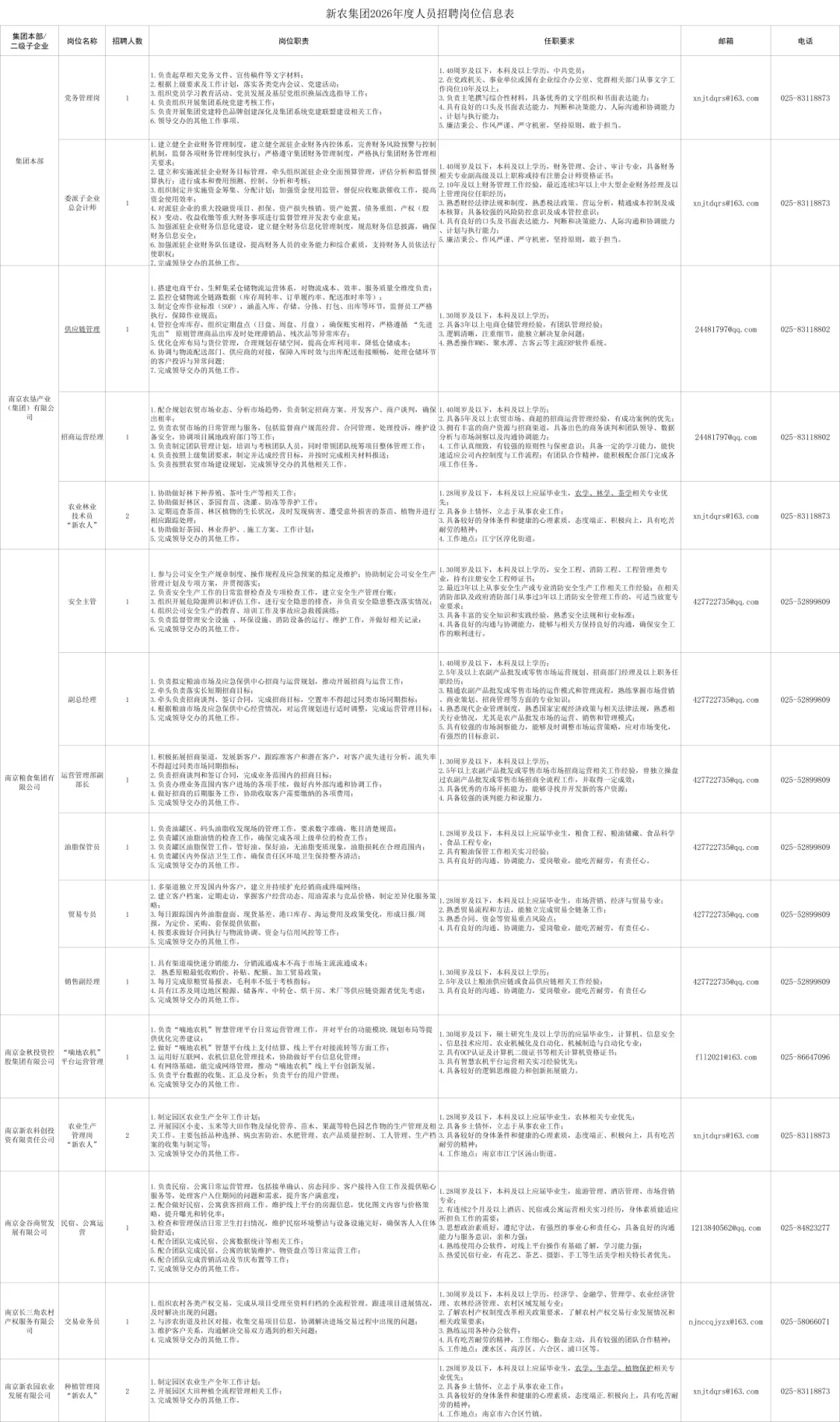 本次招聘涵盖新农集团及所属子企业的16个岗位19人次