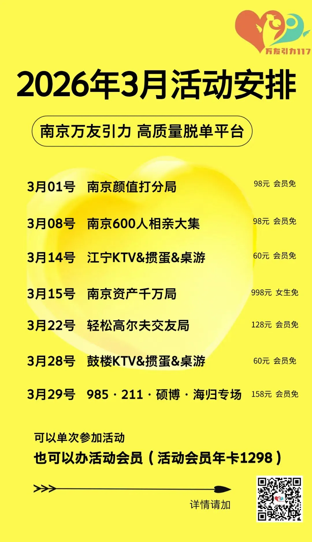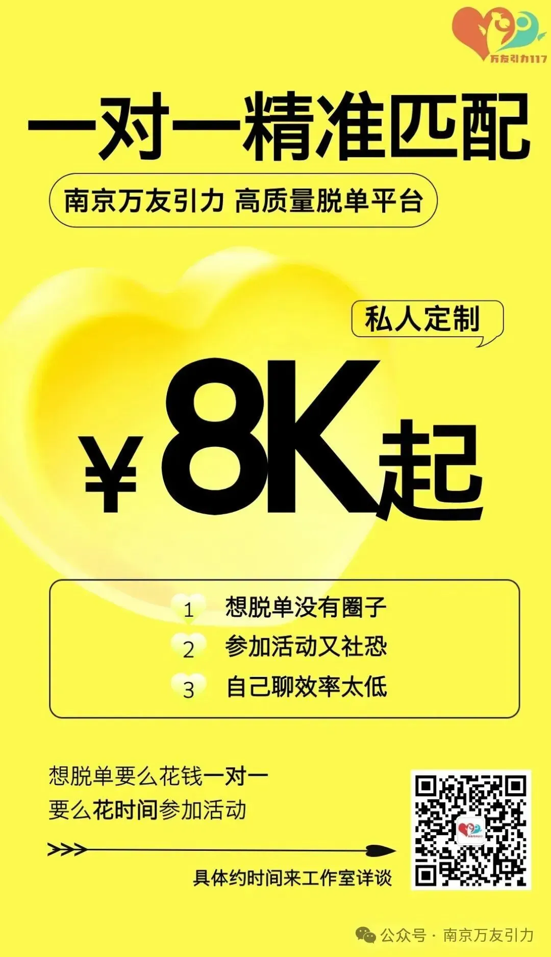 万友引力117是南京地区高品质单身交友平台,是南京地区主要针对国内985、211名校及海外名校校友的精品交友平台。扫描下方二维码上榜快速脱单!