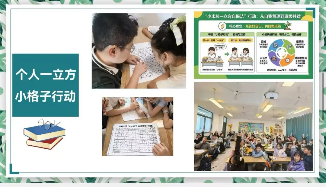 开展“小格子行动”,小组内明确分工、轮值互评,通过评分表具体引导、互相提醒,推动学生由“被盯着”转向“被需要”,共同建构规则,在集体中学会负责与协作。