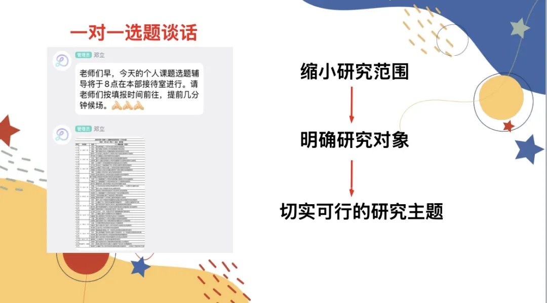 张老师的成长离不开恩师指点与学校支持。师父张云老师在案例框架、课题方向等方面精准点拨,学校以大课题引领,通过课题指导、“一对一选题问诊”等活动,助力明确研究主题。依托这份帮扶,在教科研道路上稳步前行,为后续成果积累奠定基础。