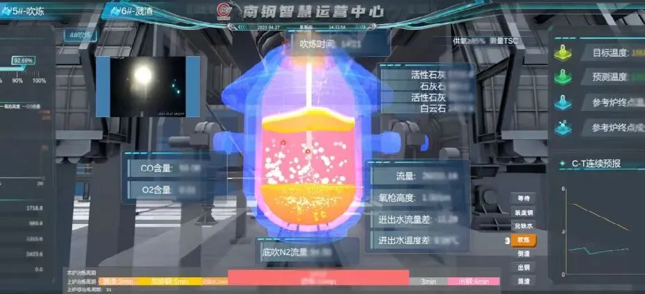到了转炉炼钢环节,大模型又能实时分析冶炼过程中炉气成分、熔池温度、供氧流量等数据,动态调整供氧强度、造渣剂用量,实现终点碳含量与温度双达标。目前,南钢转炉智慧炼钢模型已显著提升冶炼终点命中率至90%以上。