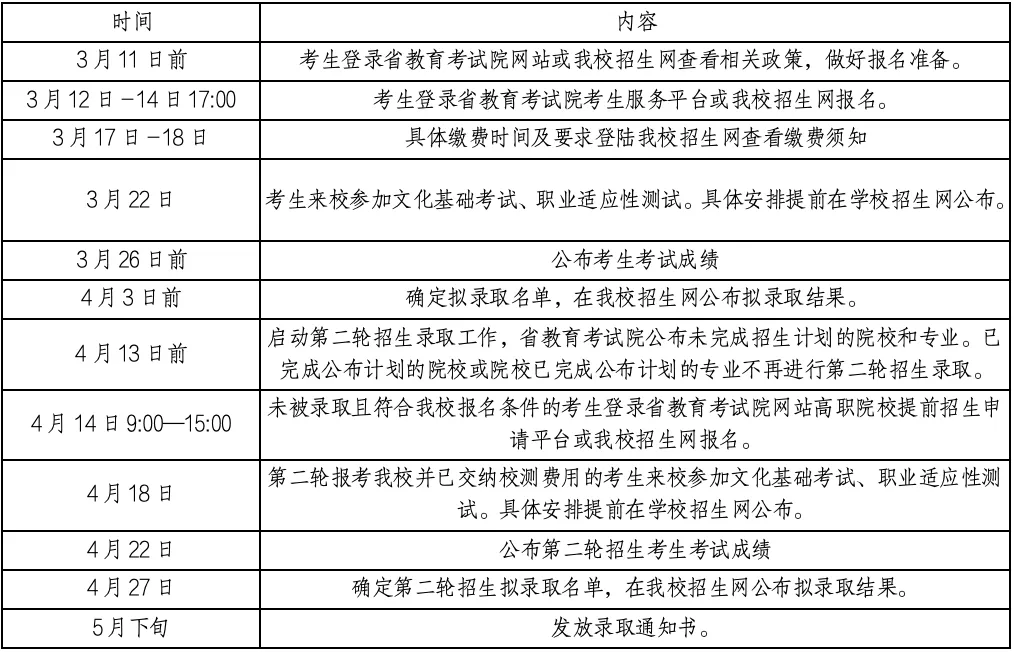 (一)根据省教育考试院下达的提前招生工作日程和我校实际情况安排,如有变化,我校将通过招生网发布通知。我校如第一轮即完成公布的计划总数,将不再组织第二轮招生录取工作。