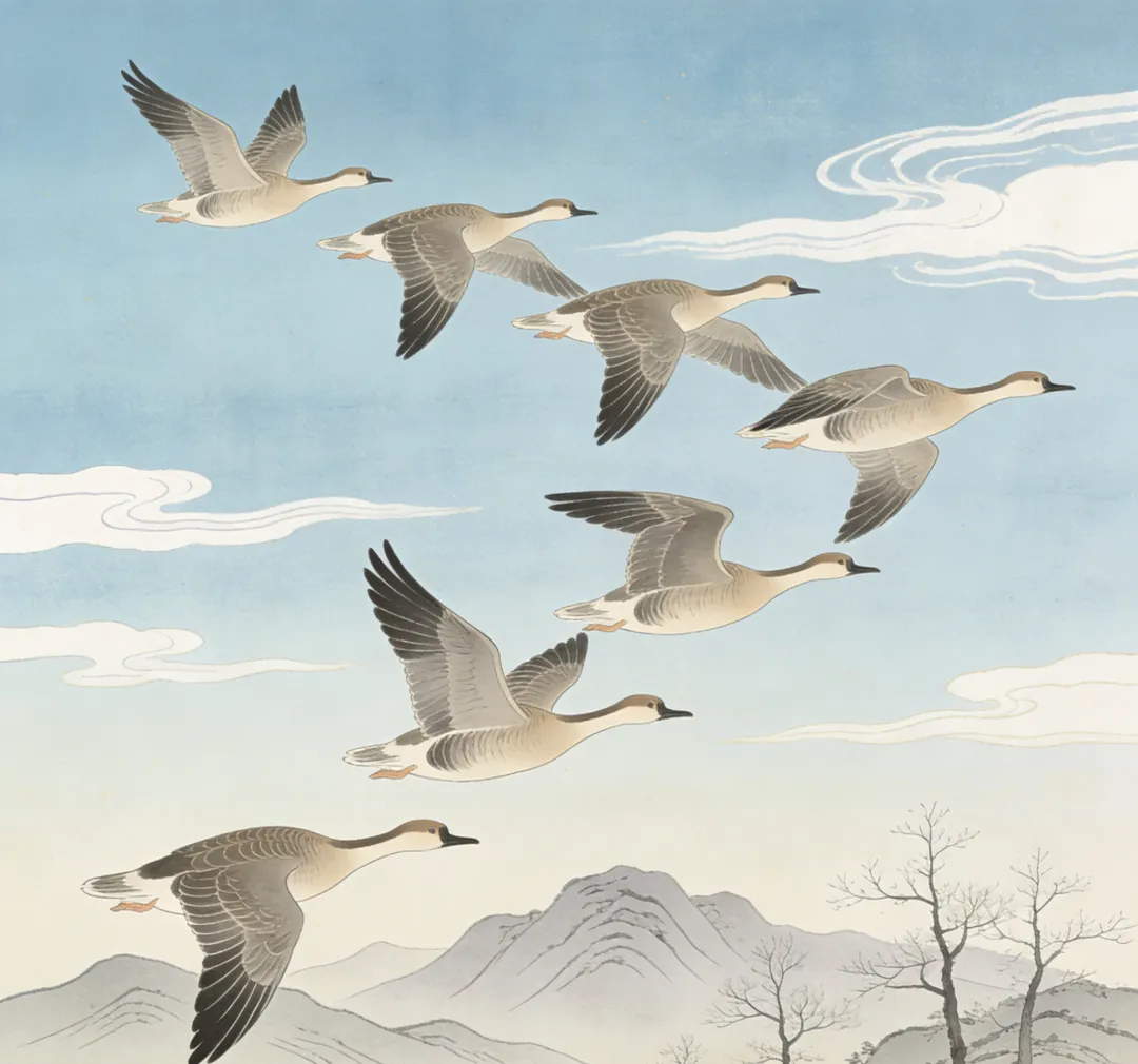 候鸟、大雁在这个节气中开始向北迁移。古人认为大雁是一种随阴阳迁徙的候鸟,小寒时节,尽管北方还是白雪皑皑,但大雁已经感知到阴阳的顺逆变化,准备开始向北迁移。