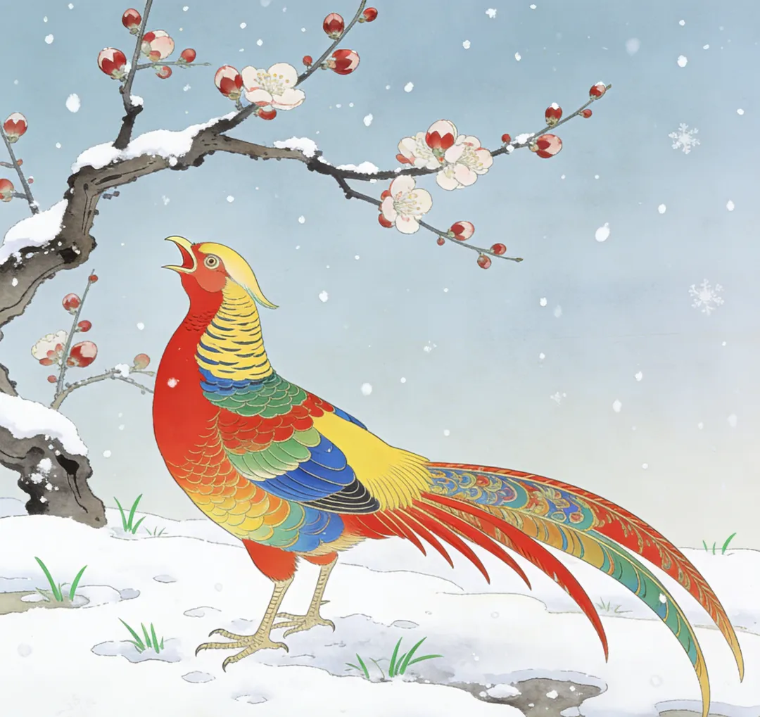 “雉鸲”的“鸲”为鸣叫的意思,雉鸡开始发出求偶的声音。古人发现,雉每年到小寒节气,就会感到阳气,雄雌同鸣。