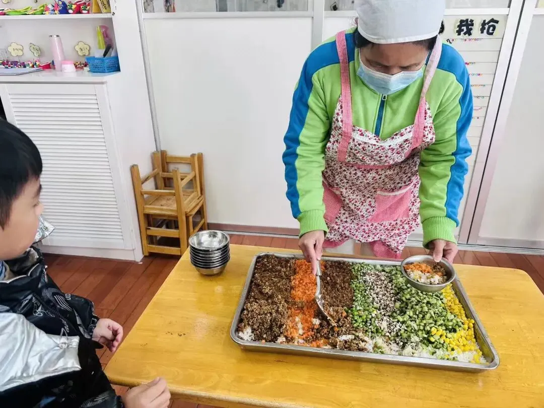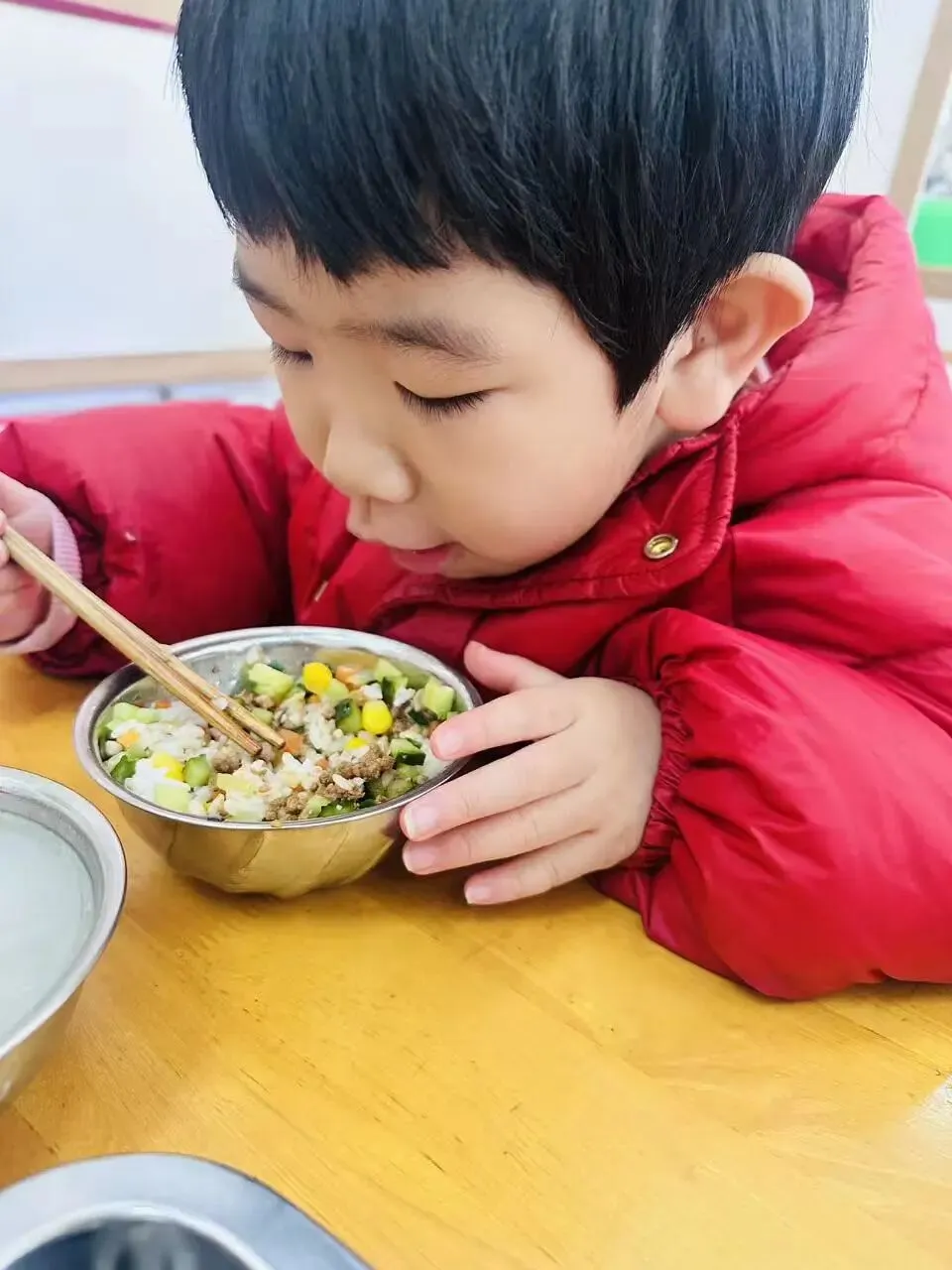 小寒节气快要到了,幼儿园里也安排了美味的菜饭,快跟我一起来尝一尝吧!