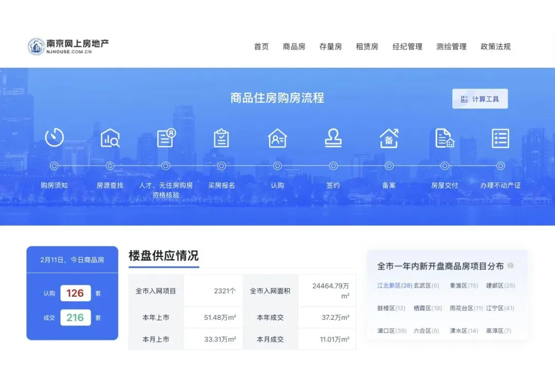 据南京网上房地产官方数据,截止到2026年2月11日,南京商品房认购126套,成交316套。