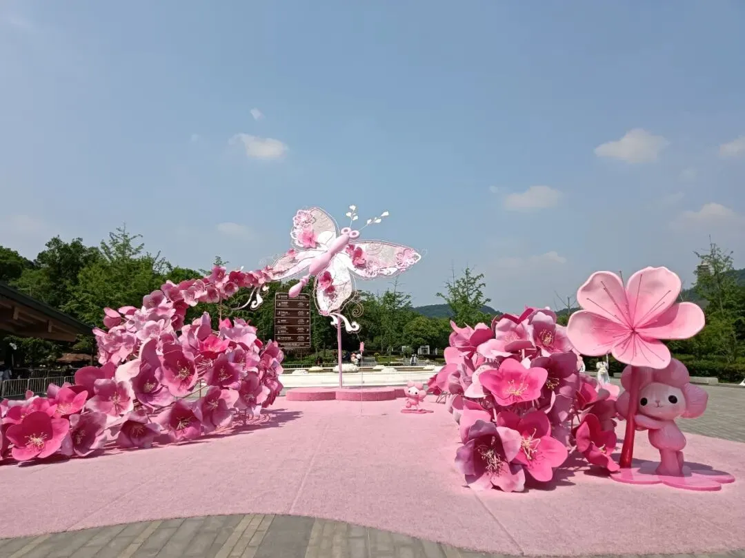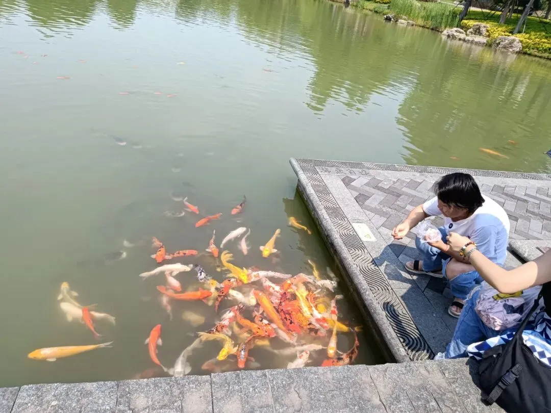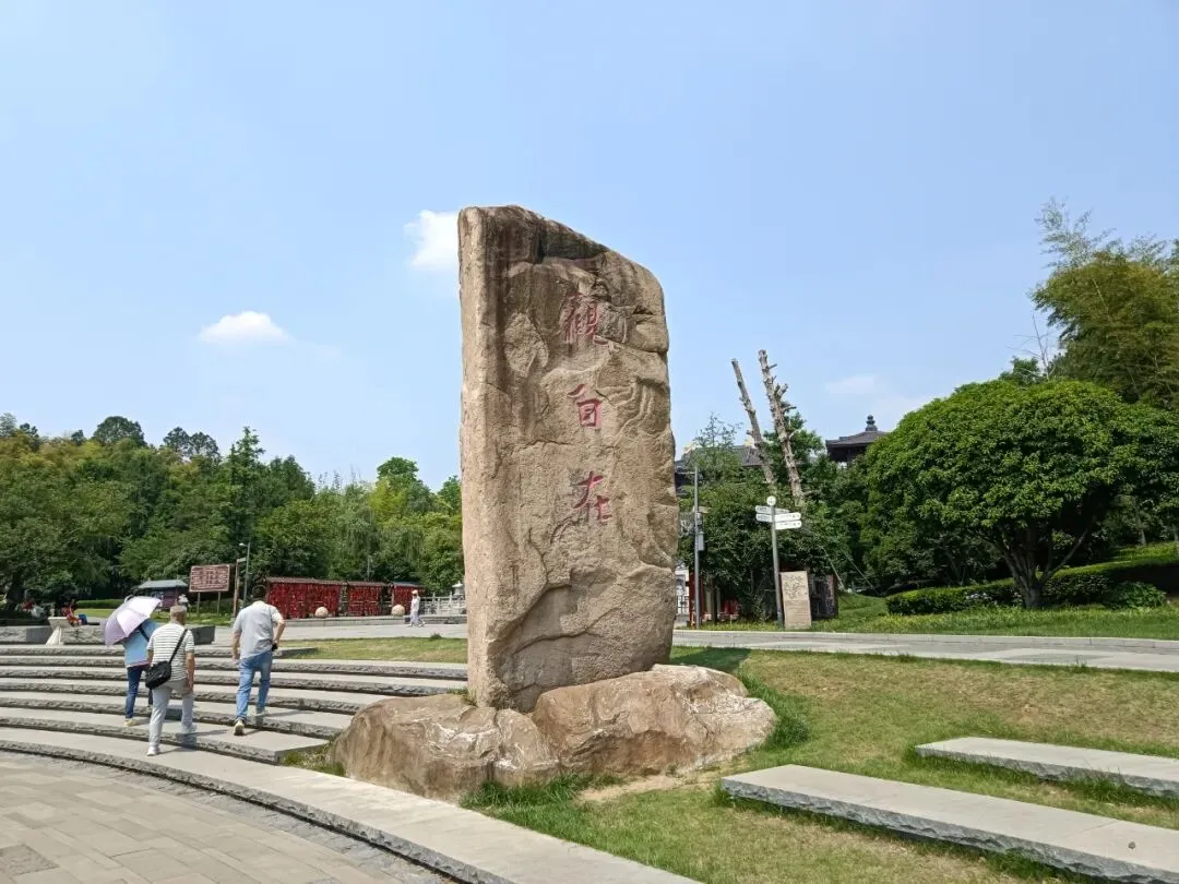 周日人多,停车场停满了来自各地的大巴车和小车。公交车绕过停车场,车站在东门广场边。音乐喷泉正在喷放,下车就感受景区的氛围。