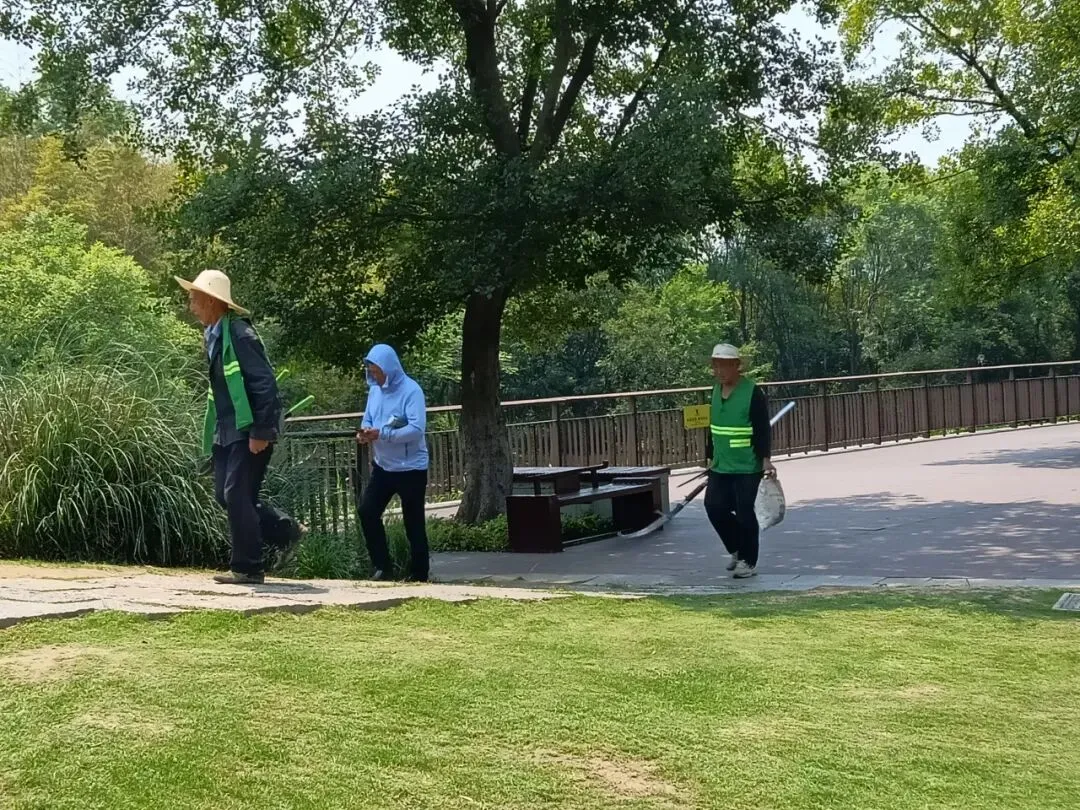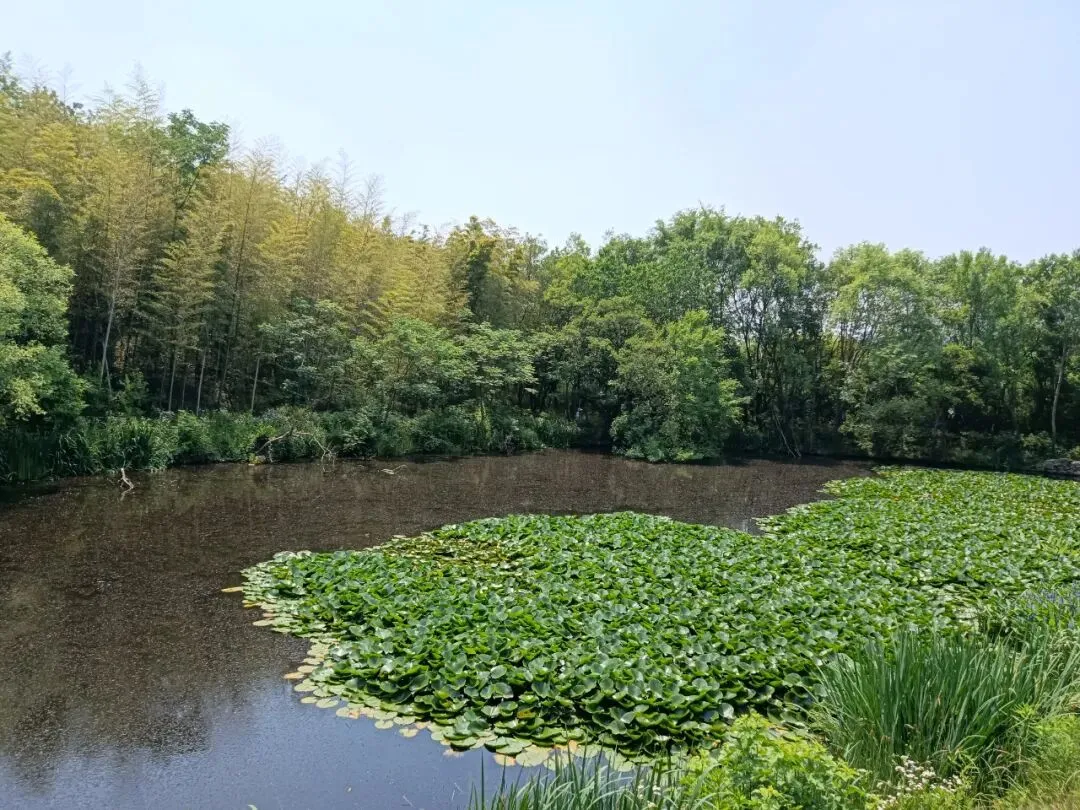 佛顶寺南面,一座牌坊,外面就是上山大路。大人小孩,童车轮椅,都走这里上山。打理环境的都是老人。快到中午,他们陆续收工。沿途草地刚刚整修过,到处都是青草的味道。山涧池塘,种植观赏水草。