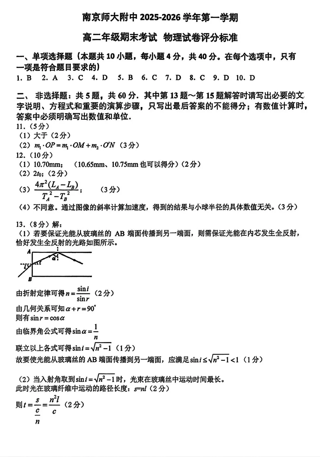 >南京师大附中2025-2026学年高二上学期期末物理