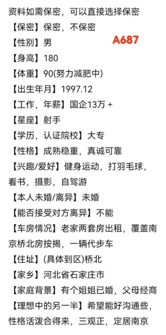 这是一个浮躁的时代,也是一个认识人成本极低的时代,无效的人和事占据太多的时间,骗子、约炮、理财销售等等让我们产生焦虑、内耗,为了帮助大家节约时间,相亲宝公众号发帖人不公布联系方式,我们红娘负责过滤一些不靠谱的人,专门进行验证,核实。提示大家:相亲急切的心情可以理解,但相亲过程中不要有任何金钱往来,切记切记。精准一对一推荐介绍,唯一线下门店地址:秦淮区大行宫长安国际2307。
