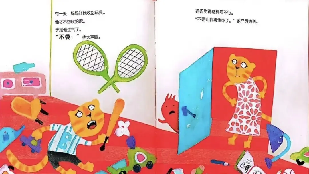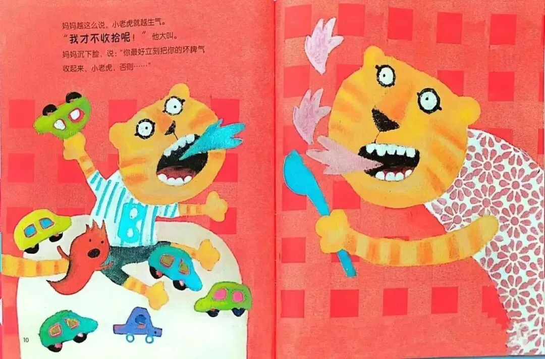 妈妈越这么说,小老虎就越生气。他大叫地说:“我才不收拾呢!”妈妈沉下脸,说:“你最好立刻把你的坏脾气收起来,小老虎,否则......”